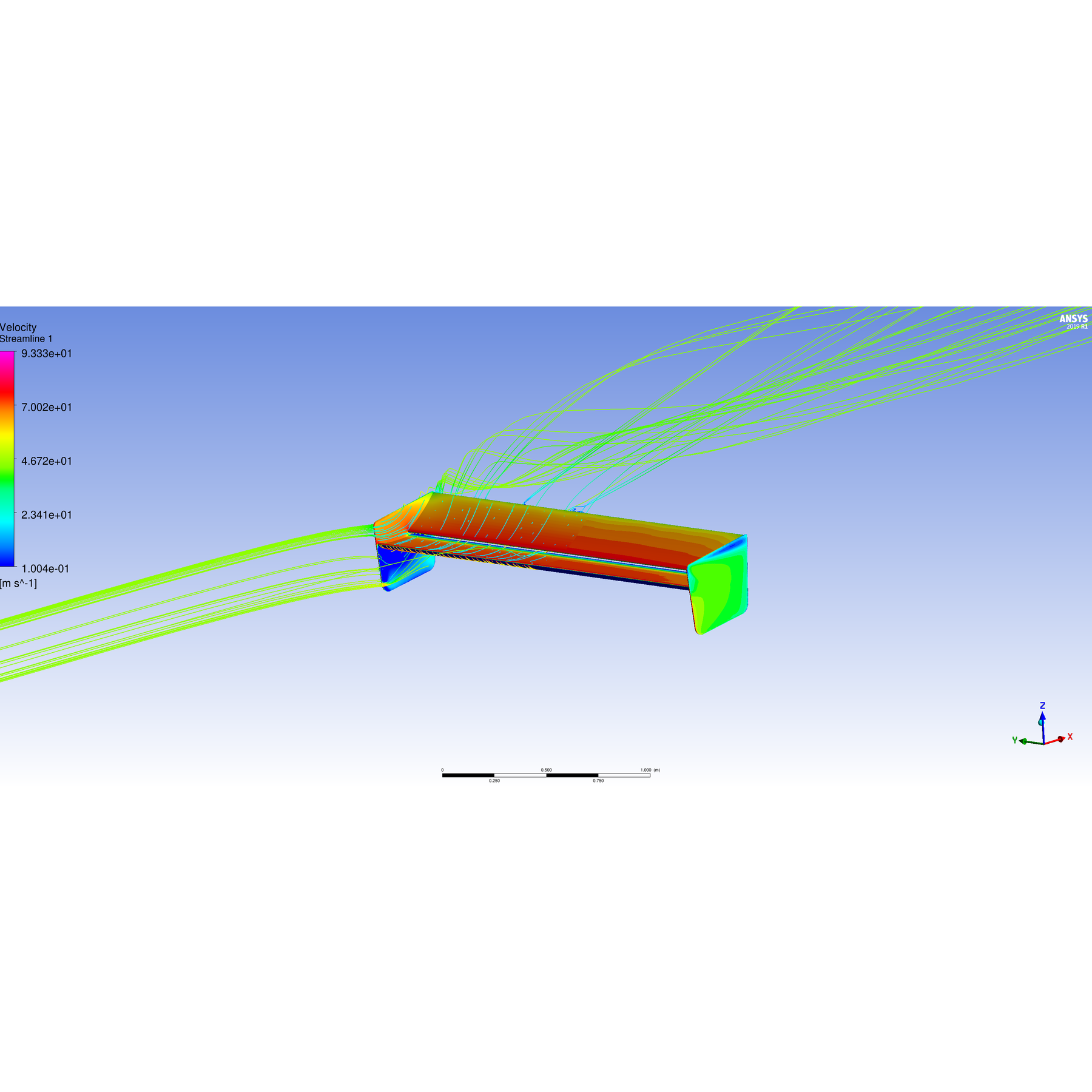· The airfoil profile of the GT-2000 HIGH DOWNFORCE is engineered for high-efficiency downforce generation with an emphasis on minimizing drag. The airfoil's 2D shape has been rendered through Computational Fluid Dynamics (CFD) to provide maximum downforce by improving rear-end stability without excessive drag penalties.
