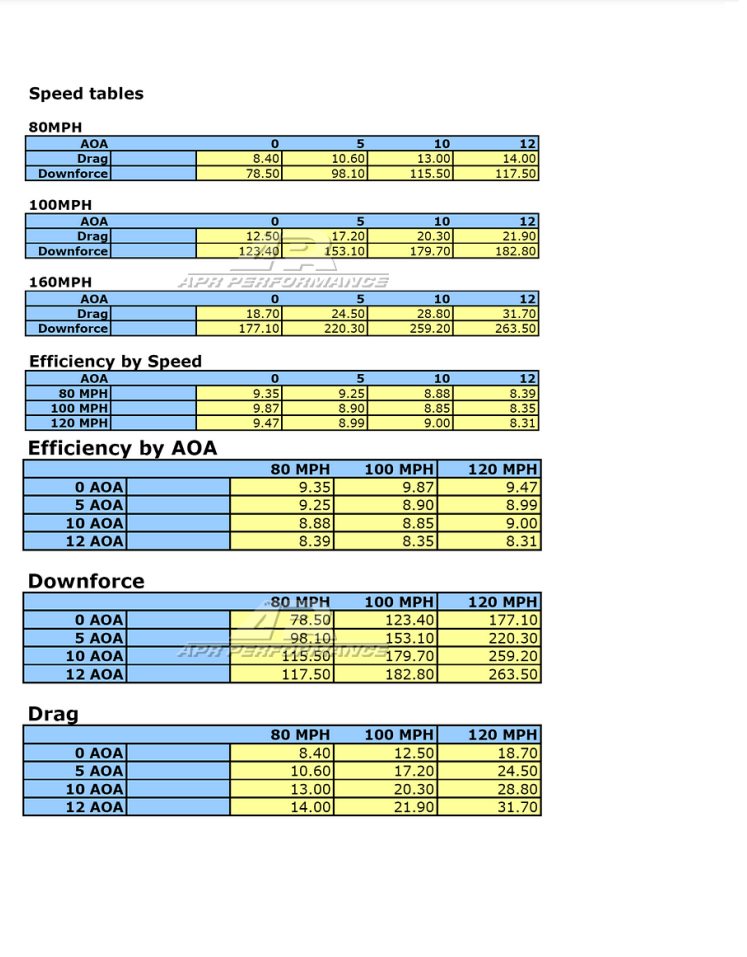 Downforce and Drag Characteristics: