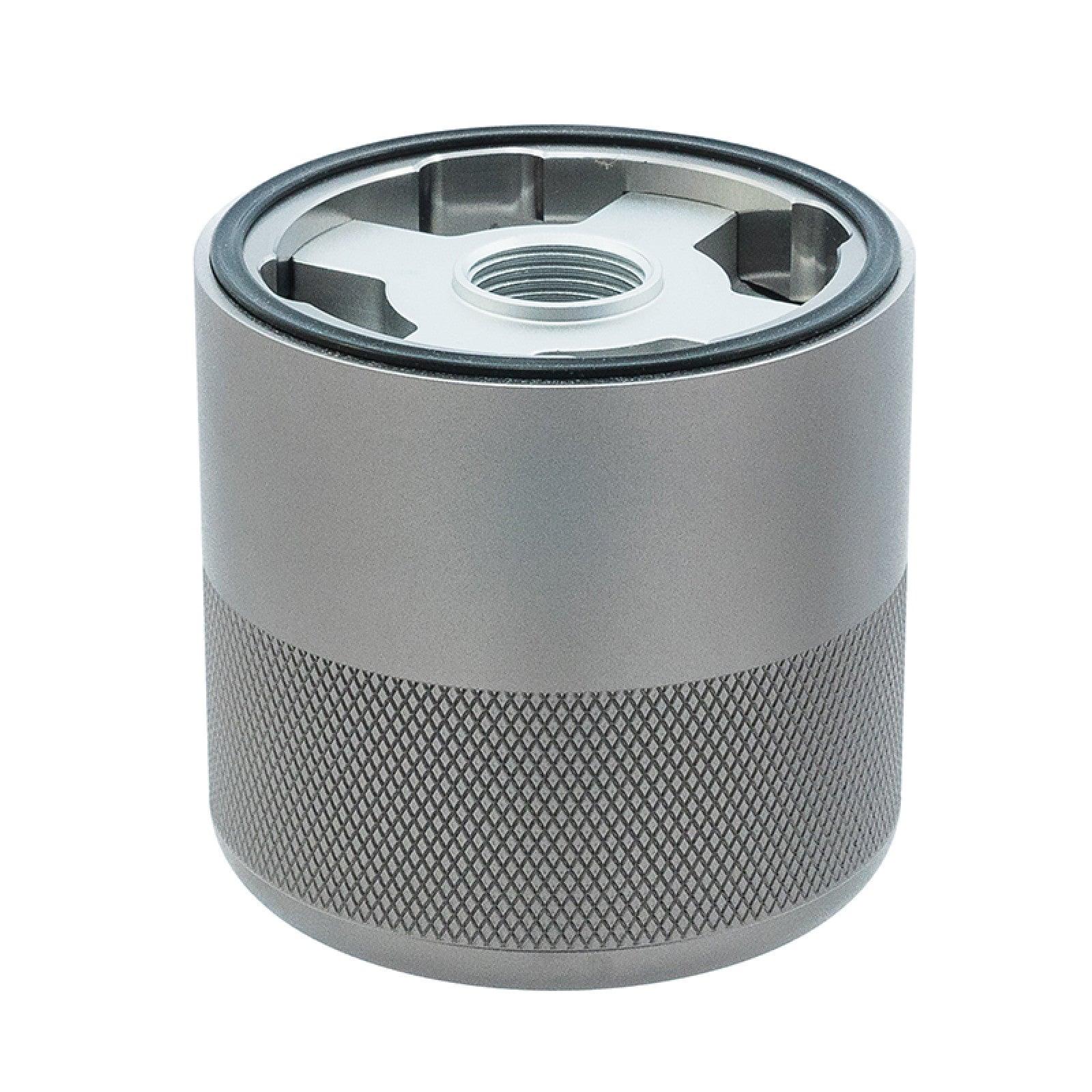 High flow volume, low pressure drop, 30 µ absolute filtration, and a strong rare-earth magnet combine to deliver unmatched performance and protection. The HyperFlow Oil Filter's surgical-grade stainless-steel mesh media filter element captures all particulates above 30 µ, leaving no doubt about the oil reaching your engine. The improved flow characteristics of the HyperFlow Oil Filter reduce restrictions on the oiling system. Less restriction on the oiling system means less power is spent pumping oil and more power reaches the wheels. Nothing larger than 30 µ gets past this fine mesh filter. A cleanable filter element offers convenience and longevity. Precision CNC-machined billet aluminum body with titanium-color anodized finish offers a knurled non-slip grip surface and a hex boss for easy removal. Standard sized hex boss is pre-drilled for safety wire. No tools are needed to disassemble the HyperFlow Oil Filter. Simply push the filter element into the body and twist to remove, clean, and reuse.