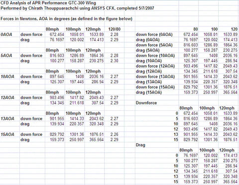 · The airfoil profile of the GTC-300 is engineered for high-efficiency downforce generation with an emphasis on minimizing drag. The airfoil's shape has been rendered through Computational Fluid Dynamics (CFD) to provide balanced performance by improving rear-end stability without excessive drag penalties.