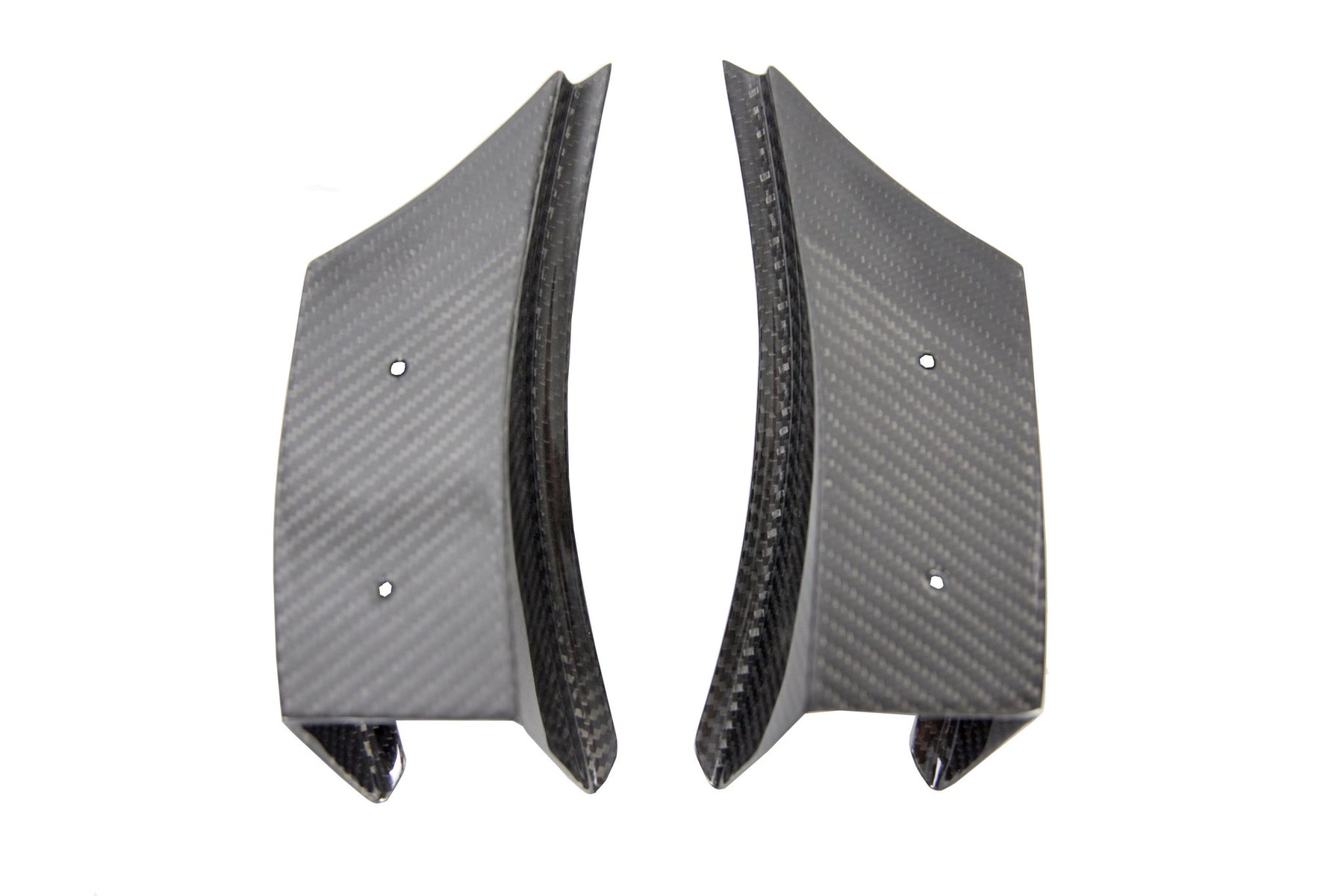 These APR Front Bumper Canards are made using pre-pregnated carbon fiber manufacturing processes, for high strength and low weight.