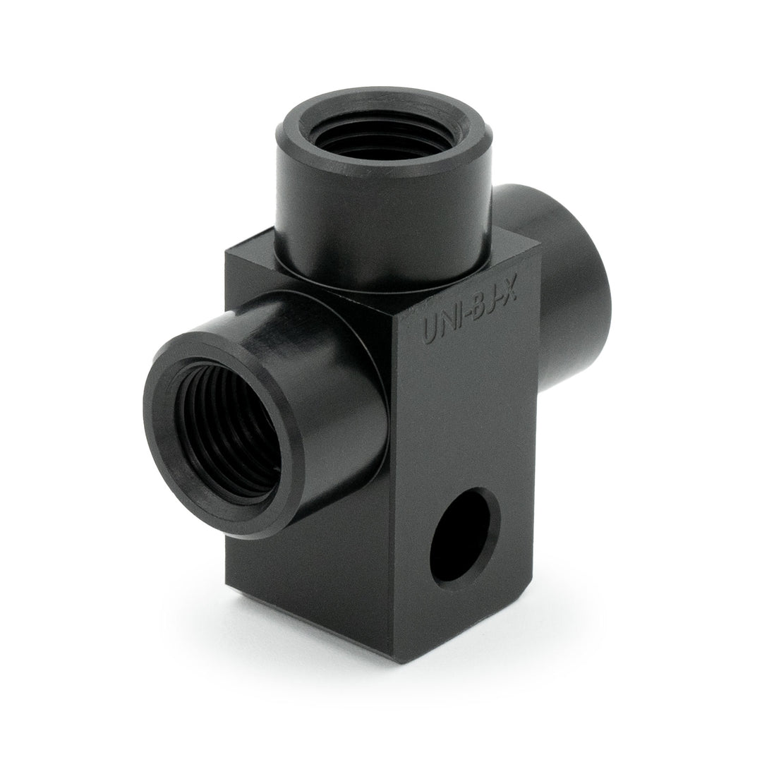 M10 x 1.00 Female T-Piece Adapter with 6mm Mounting Hole HEL Aluminium