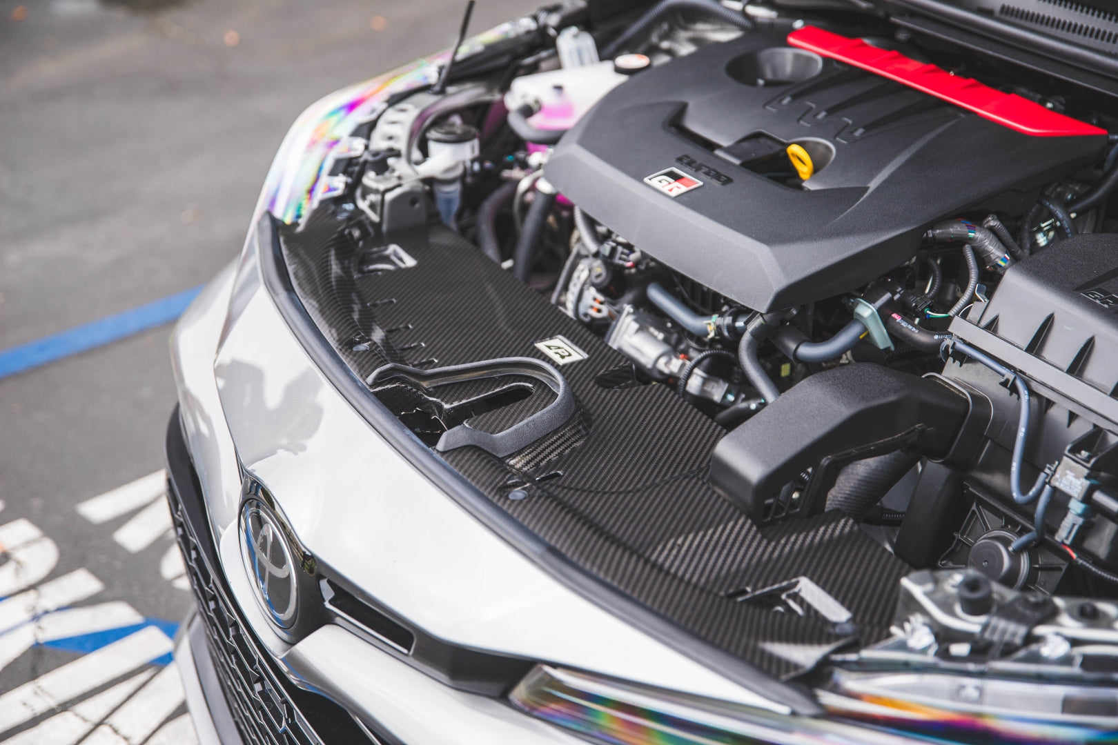 The flow of air is not only limited to the outside of a car. To maximize cooling capabilities, a radiator needs a direct flow of air to allow an engine to maintain consistent temperatures on the race track. Because of structural gaps above the radiator, the flow of air could escape making the radiator not as efficient as it could be. To help improve the flow of air into the radiator, APR Carbon Fiber Radiator Cooling Plates can be utilized to channel the flow of air directly to the radiator. This will improve the efficiency of the radiator while adding a high-tech, race inspired look to your engine bay.