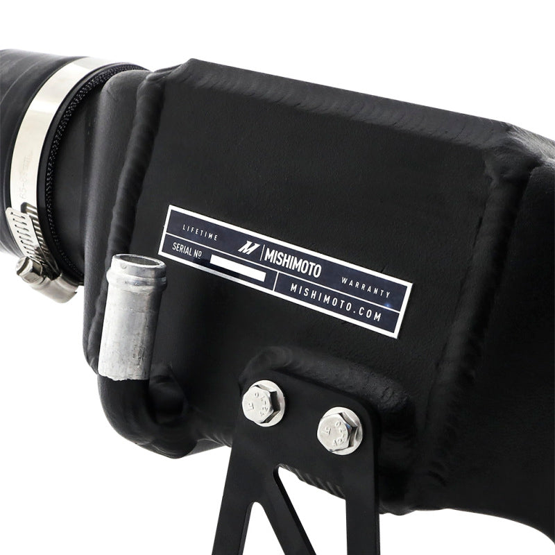 That’s why Mishimoto has developed our performance air-to-water intercoolers for the 2016-2024 Q50/Q60 3.0T. Our intercoolers feature a 49.8-percent increase in core volume over the stock intercoolers for improved heat transfer and maximum performance. That increase in core volume, combined with optimized tubes and fins, also allows our intercoolers to be over 51-percent less restrictive than stock. That means your turbos don’t have to work as hard, and the boost pressure they generate isn’t wasted shoving air through a restrictive intercooler. All those improvements result in dyno-proven charge air temperatures that are up to 23-degrees cooler than stock. Colder intake charge temps mean your VR30 can make the most of every drop of fuel, and we were able to produce power gains of up to 8 HP and 12 lb.-ft of torque without a retune. We also know that high boost pressures require strong components, which is why we constructed our intercoolers with cast aluminum end tanks. This design eliminates potential leak points and stress concentrations that welded tanks may suffer from. The included ancillary hoses and couplers ensure coolant and air flow reliably through the intercoolers, and the included engine cover spacers let you keep your extra cooling hidden for a stealth approach. Like all Mishimoto products, these performance intercoolers for the 2016-2024 Q50/Q60 3.0T are backed by our Mishimoto Lifetime Warranty.